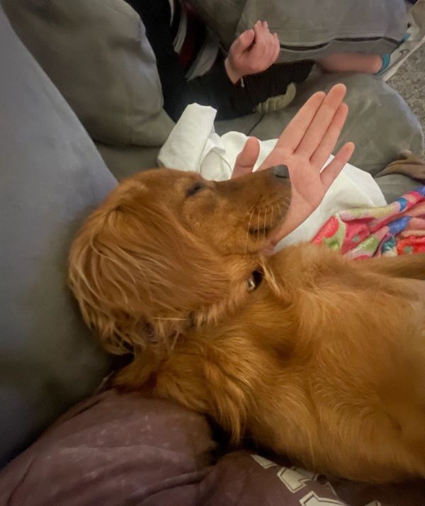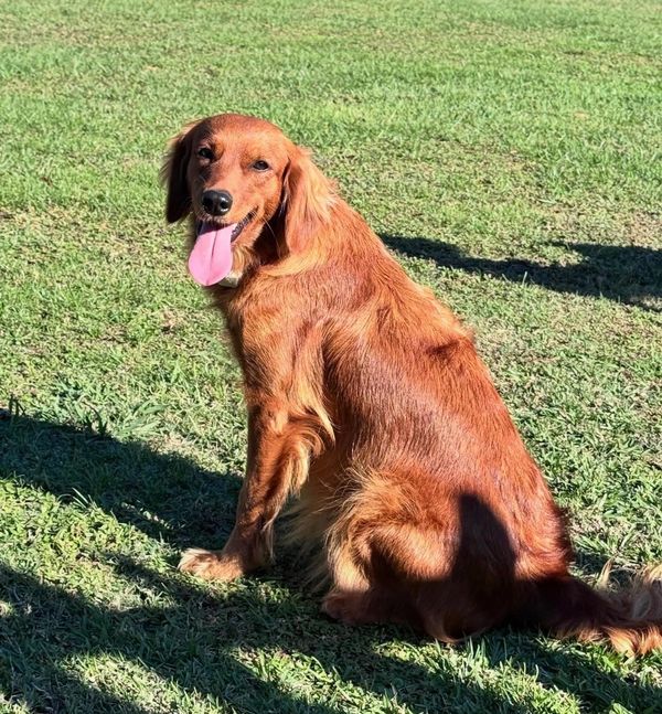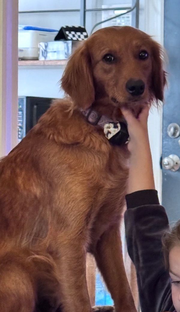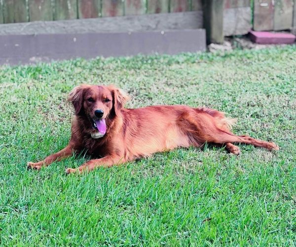 We have a up and coming miniature golden retriever momma! Darlin' is a flat coated goldendoodle that comes all the way down from Mississippi. She is a deep dark red with a CT shedding coat and is clear of all genetic issues through Embark. We are offering her out as a guardian home, which means you get her for free as your loving family dog while we maintain the rights to breed her. We would only breed her for two more litters, so her new family could expect to have breeding-related responsibilities for only a year to a year and a half before she retired and got to spend the rest of her long and happy life with her new family. She is 35 lbs and simply darling! Let me know if you're interested in this sweet girl being yours!